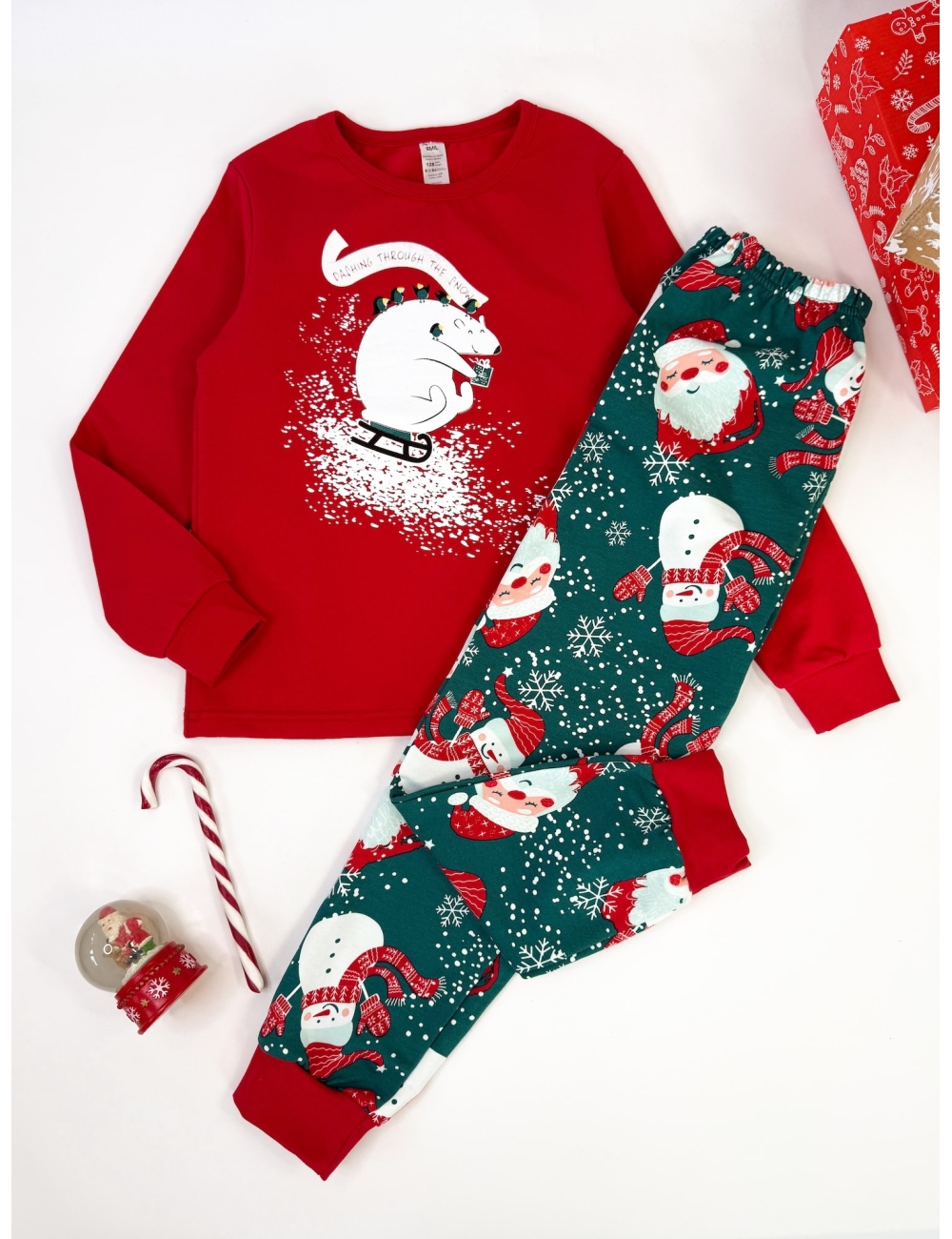 Піжама дитяча підліткова новорічна тепла тм "Сміл" Ведмідь на санках