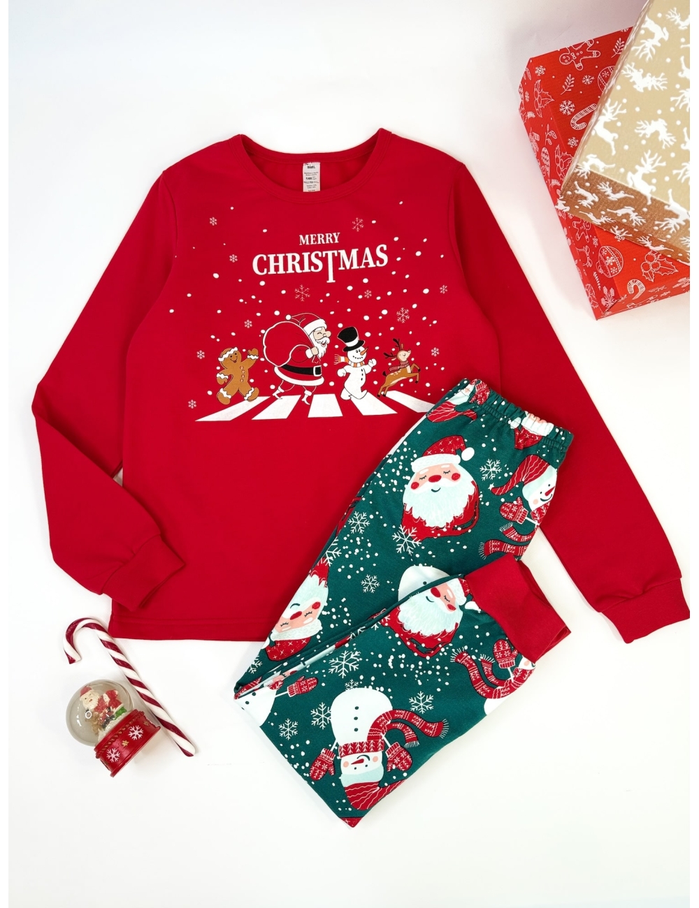 - Принт: святковий Святий Миколай «Merry Christmas», світиться у темряві, безпечний, не викликає подразнень