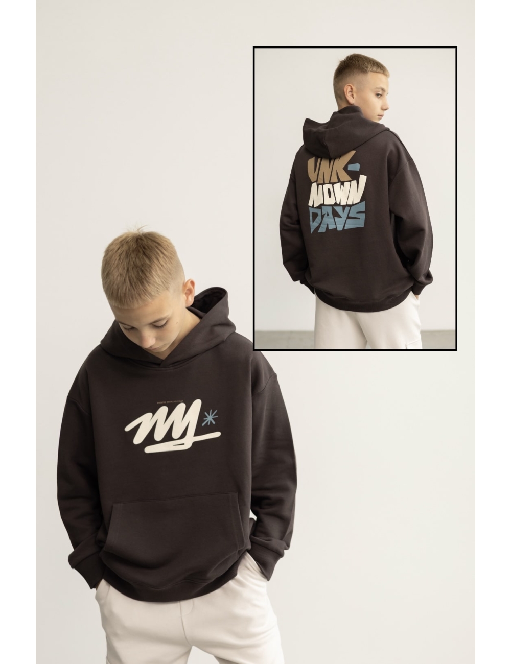 Худі для хлопців-підлітків: футер двонитка, 70% бавовна / 30% полівіскоза, повномірне, кишеня «кенгуру», манжети, рельєфний принт спереду й ззаду. (світшот, кофта)