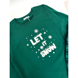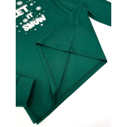 - Лонгслив насыщенного зеленого цвета с ярким принтом "Let It Snow". Зимняя надпись и снежные элементы делают дизайн актуальным на все холодное время года, добавляя немного праздничного настроения.