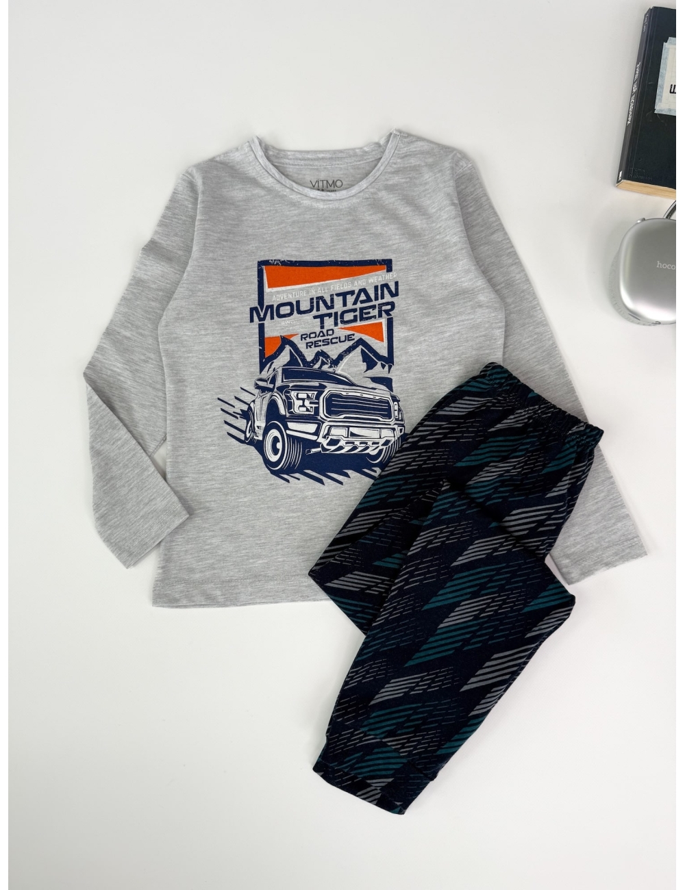 Эта турецкая пижама для мальчика, выполненная из 100% хлопка (интерлок), идеально подходит для осени и весны, обеспечивая комфорт и стиль в прохладные ночи.