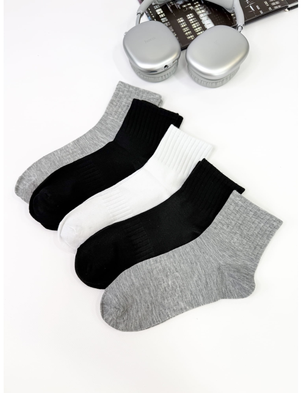 Комплект із 5 пар: 90% бавовна, зручна посадка, універсальні кольори. Підходять для спорту та щоденного носіння.